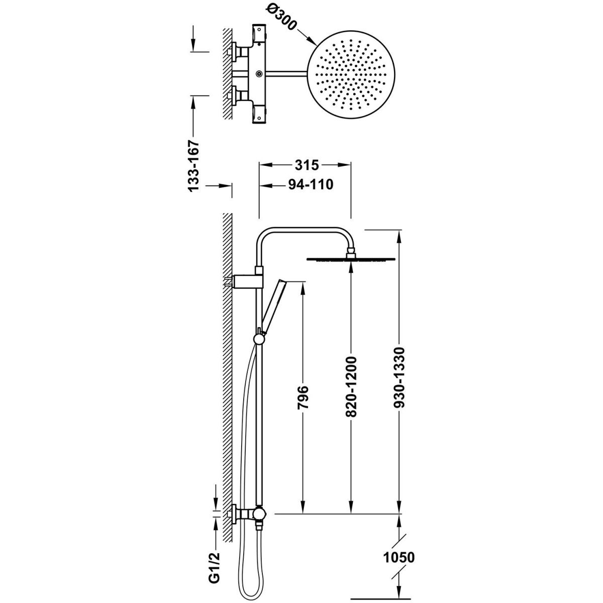 - cap de duș rotativ din oțel inoxidabil Ø 30 cm