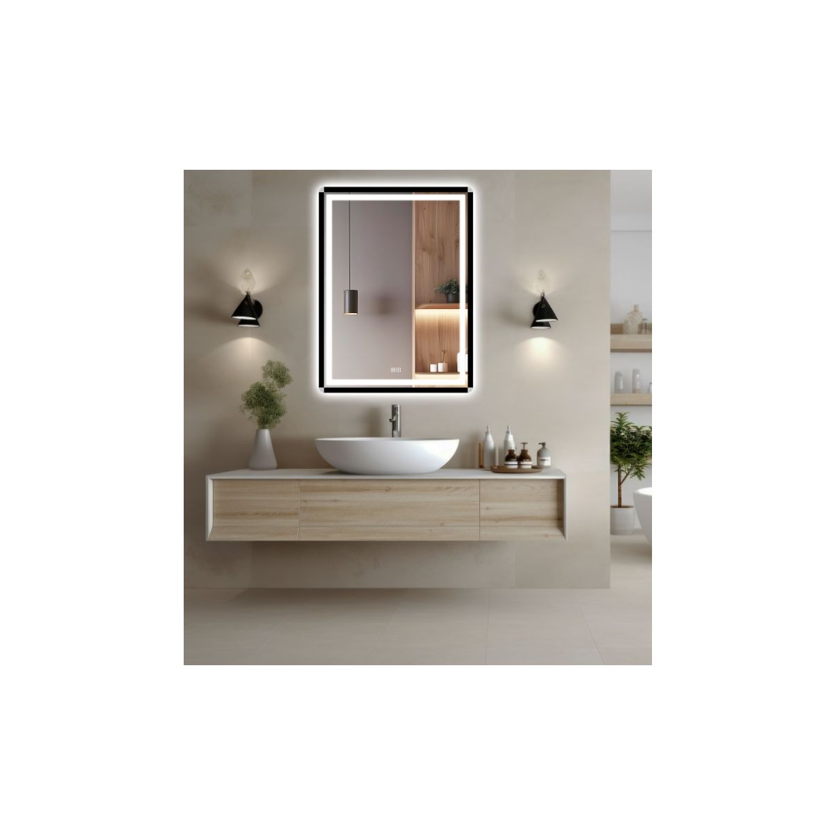 Venti Duo oglindă 60x80 cm dreptunghiular cu iluminare cu covoraș de încălzire negru-argint 5905951180427
