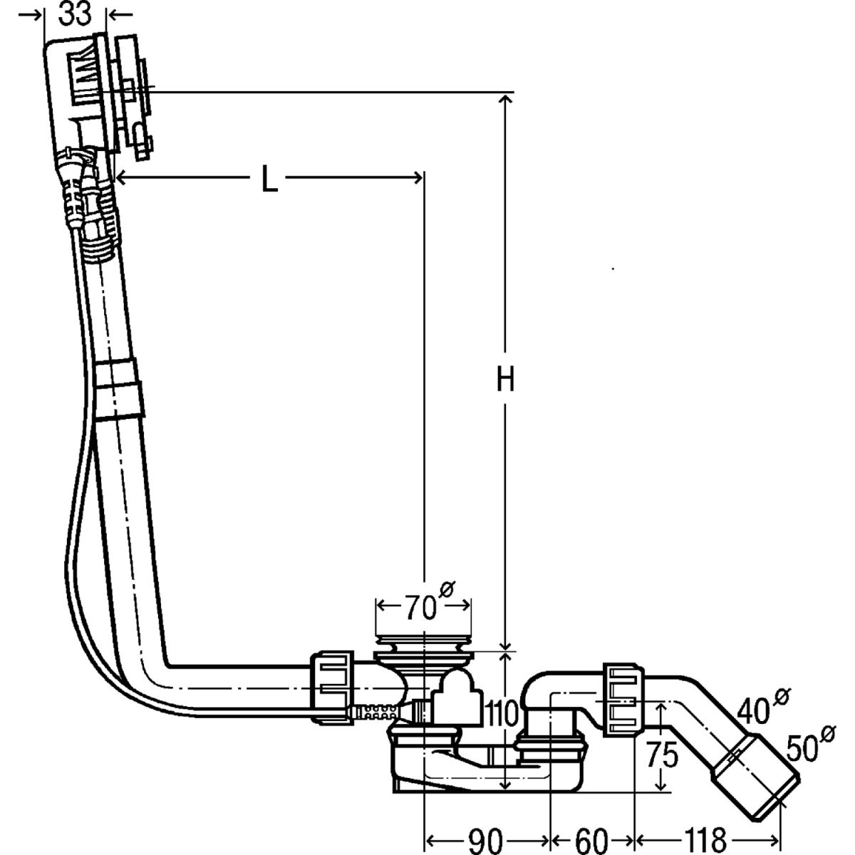 - Înălțimea sifonului 50 mm