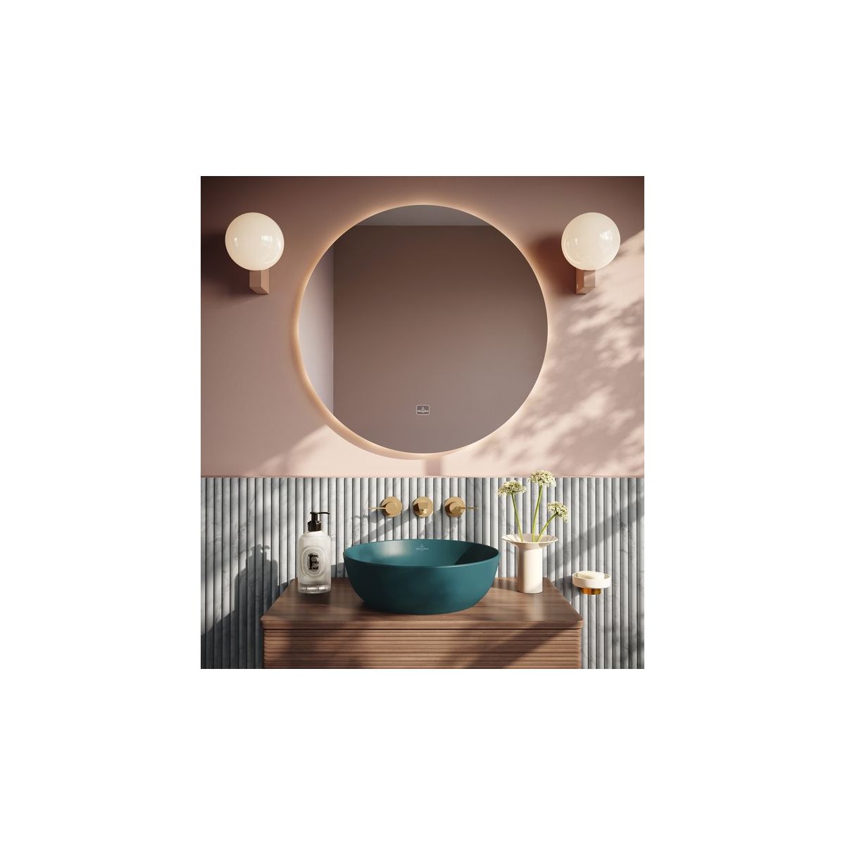 Chiuveta rotundă de blat din colecția Artis de la Villeroy & Boch impresionează prin pereții excepțional de subțiri și contururile delicate, datorită materialului inovator TitanCeram, care conferă chiuvetelor cu margini înguste o robustețe și durabilitate extremă. Chiuveta are, de asemenea, o adâncime convenabilă de 10 cm, ceea ce face spălarea mâinilor foarte confortabilă și protejează zona din jurul chiuvetei de stropire. Datorită suprafeței sale rezistente la murdărie, curățarea este extrem de ușoară. Culoarea albastru-verde intensă și modernă și finisajul mat modern pe întreaga suprafață sunt perfecte ca accente de design. Împreună cu mobilierul asortat din colecția Legato sau Finion, chiuveta va fi un adevărat punct de atracție al băii.