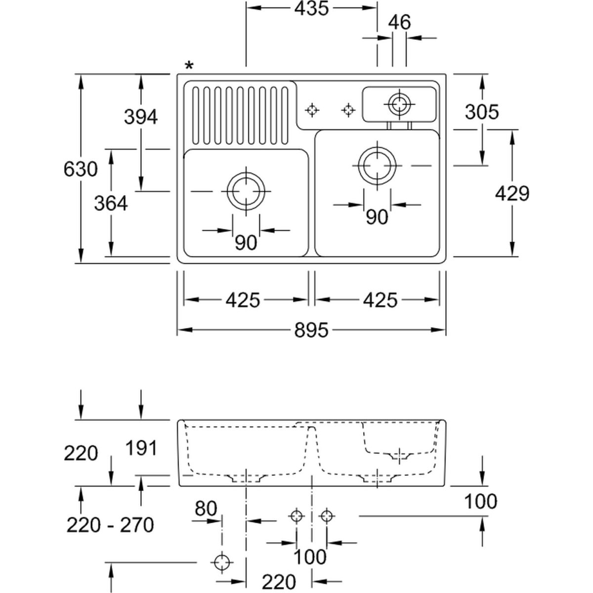Villeroy & Boch Double-Bowl chiuveta din ceramica 89.5x63 cm alb 632392R1