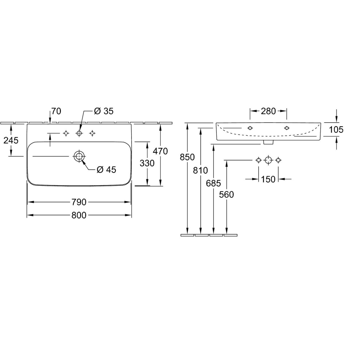 Villeroy & Boch Finion lavoar 80x47 cm dreptunghiular clasică negru 416881R7
