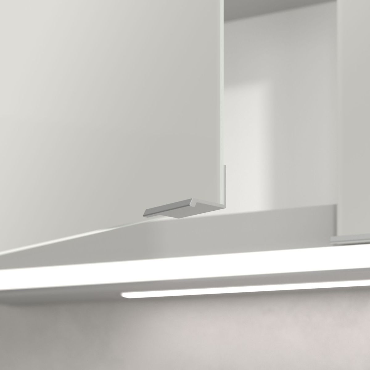 Banda LED care înconjoară oglinda asigură o iluminare uniformă, în timp ce iluminarea integrată a chiuvetei și compartimentele deschise iluminate creează o atmosferă confortabilă. Luminozitatea și temperatura culorii pot fi reglate comod folosind un senzor sau un controler Smart Home. Mânerele delicate permit deschiderea ușoară a ușilor fără a lăsa amprente, iar o priză dublă în mijloc oferă funcționalitate suplimentară.