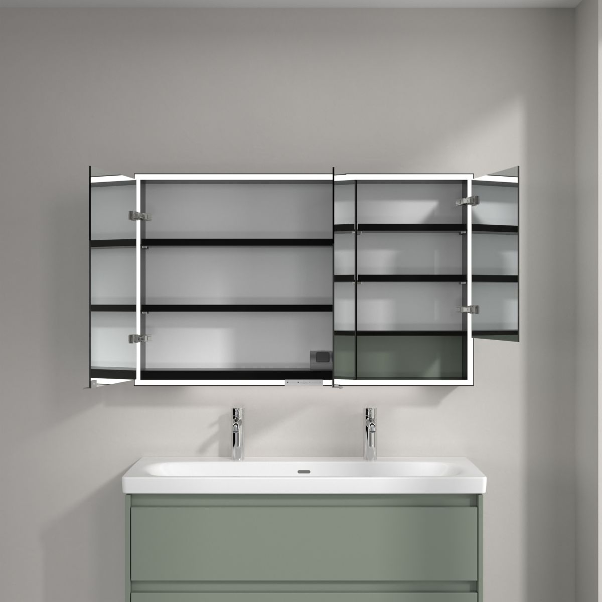 Pentru cei care au nevoie de și mai mult spațiu de depozitare, recomandăm combinarea dulapului cu oglindă My View+ cu dulapurile laterale din această colecție și alte mobilier de baie – colecția de mobilier Skyla de la Villeroy & Boch se potrivește perfect în ceea ce privește designul și modelele. Așa arată un design modern și armonios al băii!