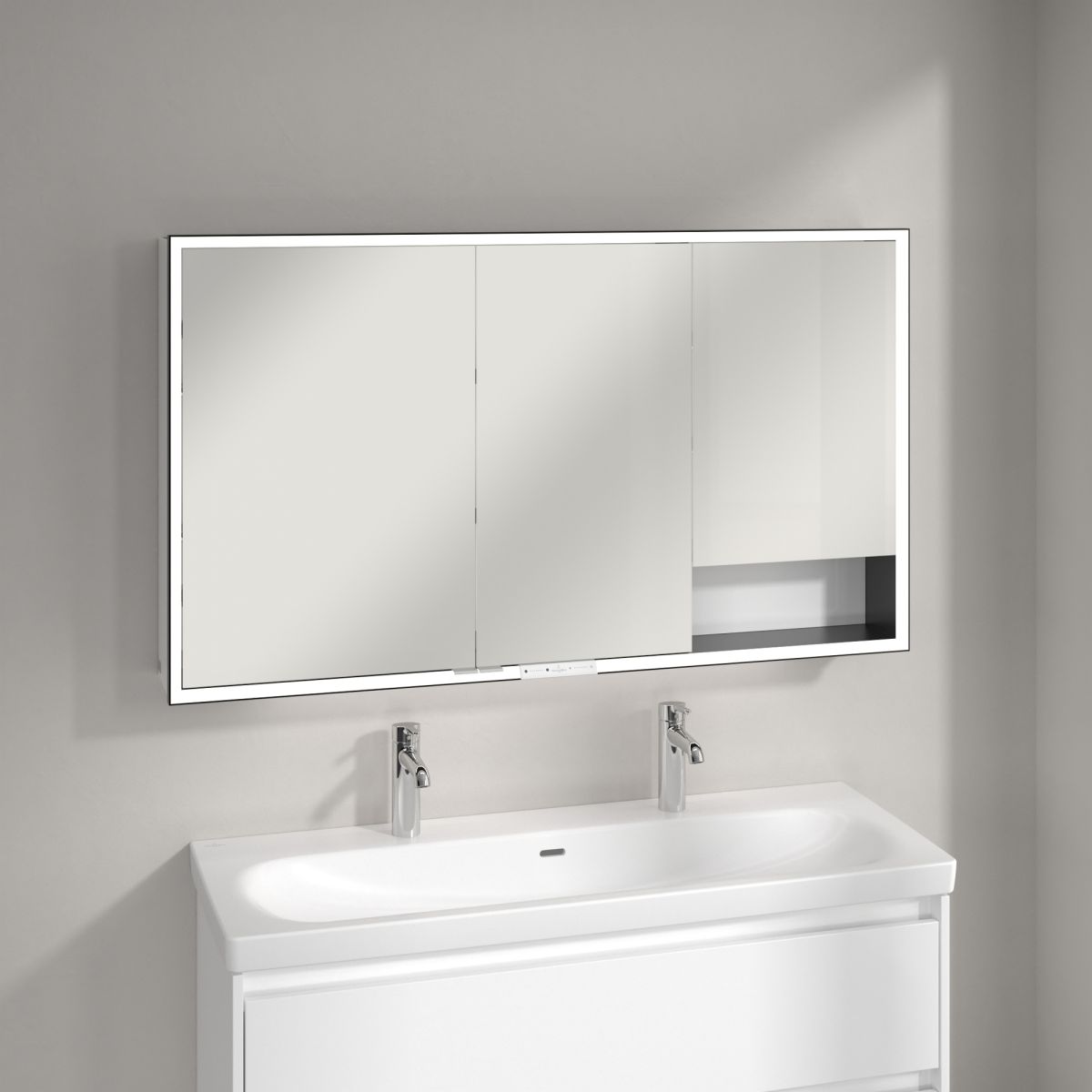 Pentru cei care au nevoie de și mai mult spațiu de depozitare, recomandăm combinarea dulapului cu oglindă My View+ cu dulapurile laterale din această colecție și alte mobilier de baie – colecția de mobilier Skyla de la Villeroy & Boch se potrivește perfect în ceea ce privește designul și modelele. Așa arată un design modern și armonios al băii!