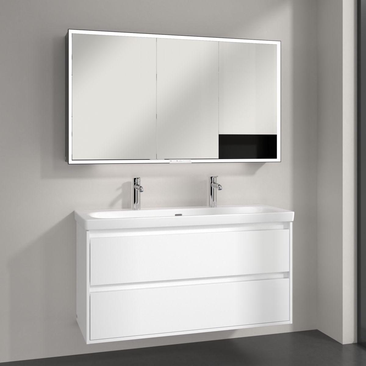 Pentru cei care au nevoie de și mai mult spațiu de depozitare, recomandăm combinarea dulapului cu oglindă My View+ cu dulapurile laterale din această colecție și alte mobilier de baie – colecția de mobilier Skyla de la Villeroy & Boch se potrivește perfect în ceea ce privește designul și modelele. Așa arată un design modern și armonios al băii!