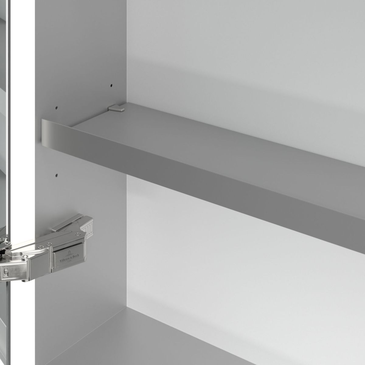 O soluție ingenioasă și atractivă pentru băile minimaliste – dulapul cu oglindă încorporată My View+ de la Villeroy & Boch introduce caracteristici inteligente și accente de culoare elegante în baie, stabilind noi standarde. Dulapul cu compartimente de depozitare închise și compartimente deschise se integrează perfect în perete și creează un efect minimalist deosebit de elegant. Panoul posterior colorat adaugă o notă individuală de culoare și design băii.