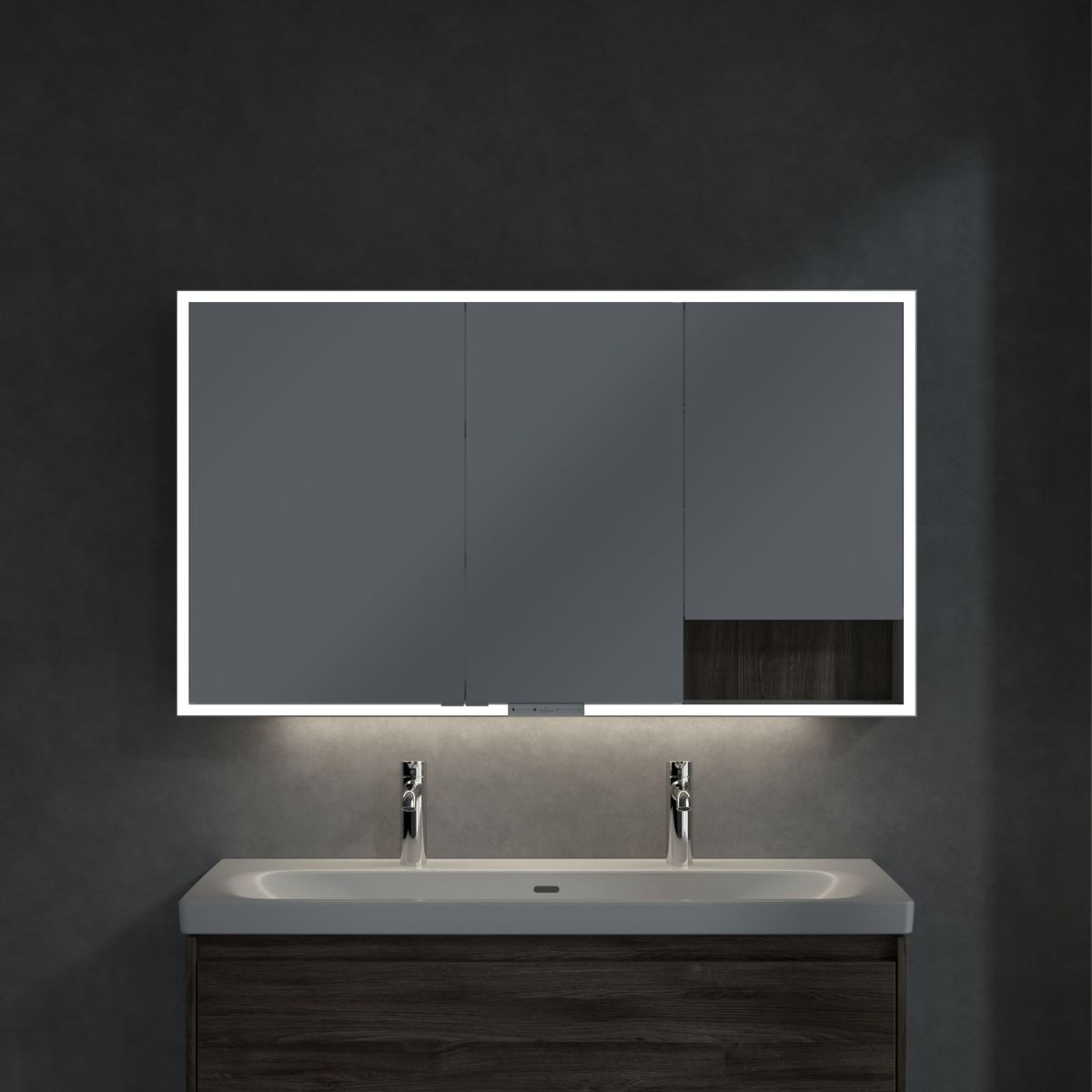 Pentru cei care au nevoie de și mai mult spațiu de depozitare, recomandăm combinarea dulapului cu oglindă My View+ cu mobilier suplimentar pentru baie – colecția de mobilier Skyla de la Villeroy & Boch se potrivește perfect din punct de vedere al designului și stilului. Așa arată un design modern și armonios pentru baie!