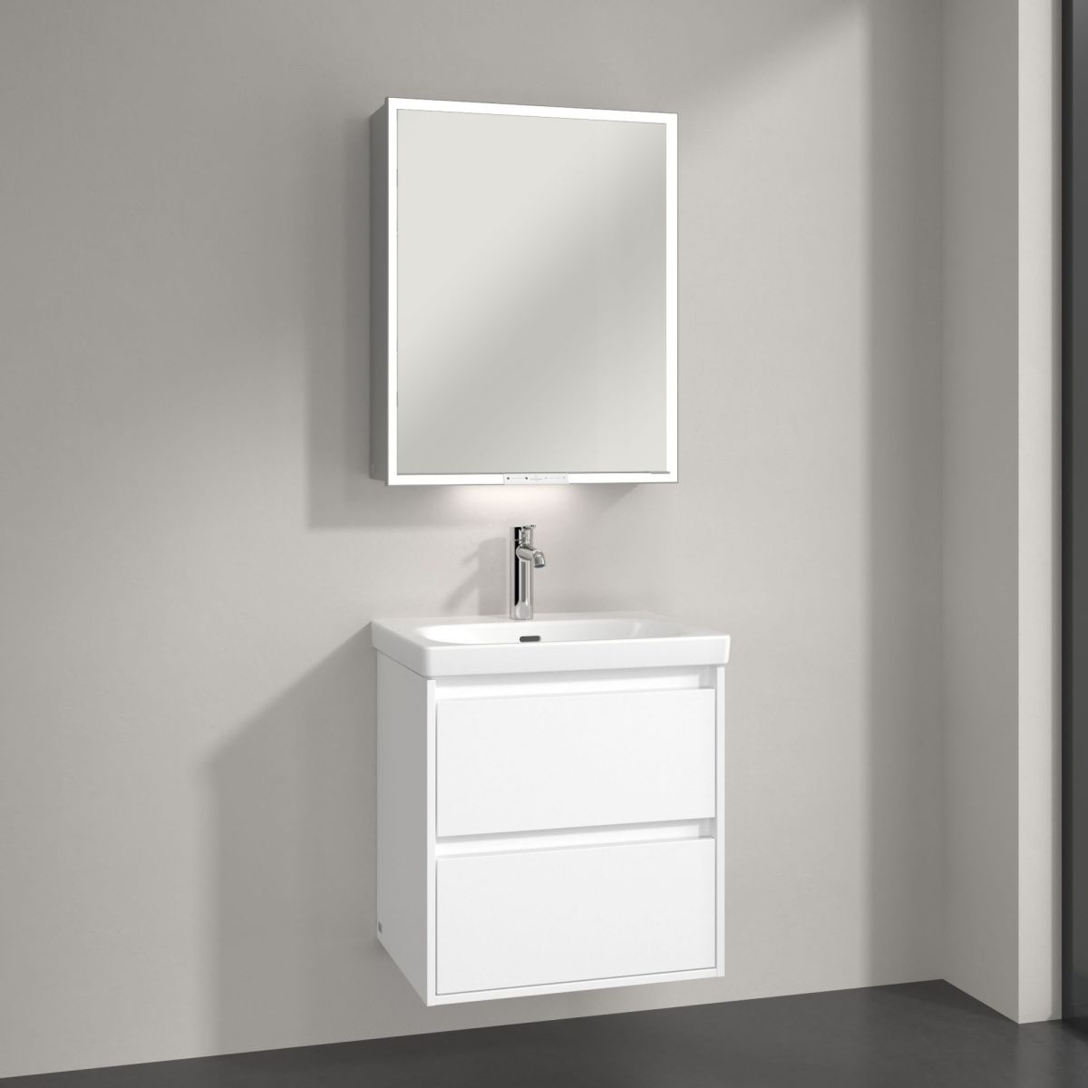 Pentru cei care au nevoie de și mai mult spațiu de depozitare, recomandăm combinarea dulapului cu oglindă My View+ cu mobilier suplimentar pentru baie – colecția de mobilier Skyla de la Villeroy & Boch se potrivește perfect în ceea ce privește designul și stilul. Așa arată un design modern și armonios pentru baie!