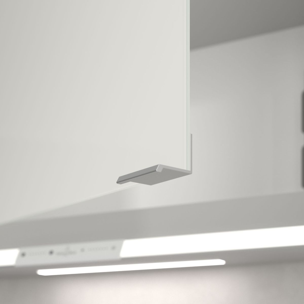 Banda LED care înconjoară oglinda asigură o iluminare uniformă, în timp ce iluminarea integrată a chiuvetei și compartimentele deschise iluminate creează o atmosferă confortabilă. Luminozitatea și temperatura culorii pot fi reglate comod folosind un senzor sau un controler Smart Home. Mânerele delicate permit deschiderea ușoară a ușilor fără a lăsa amprente, iar o priză dublă în mijloc oferă funcționalitate suplimentară.