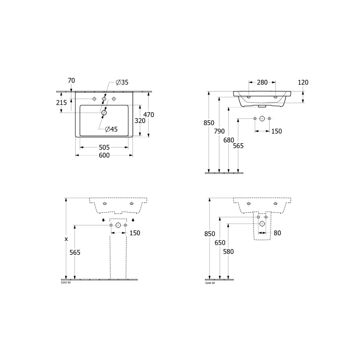 Villeroy & Boch Subway 3.0 lavoar 60x47 cm dreptunghiular mobilier alb 4A7061R1