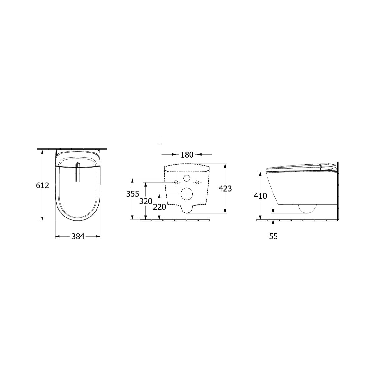 - vas de toaletă fără margine, în formă de pâlnie