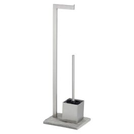 Suportul de baie independent Granite 2 în 1 include un suport pentru hârtie igienică și o perie de toaletă.