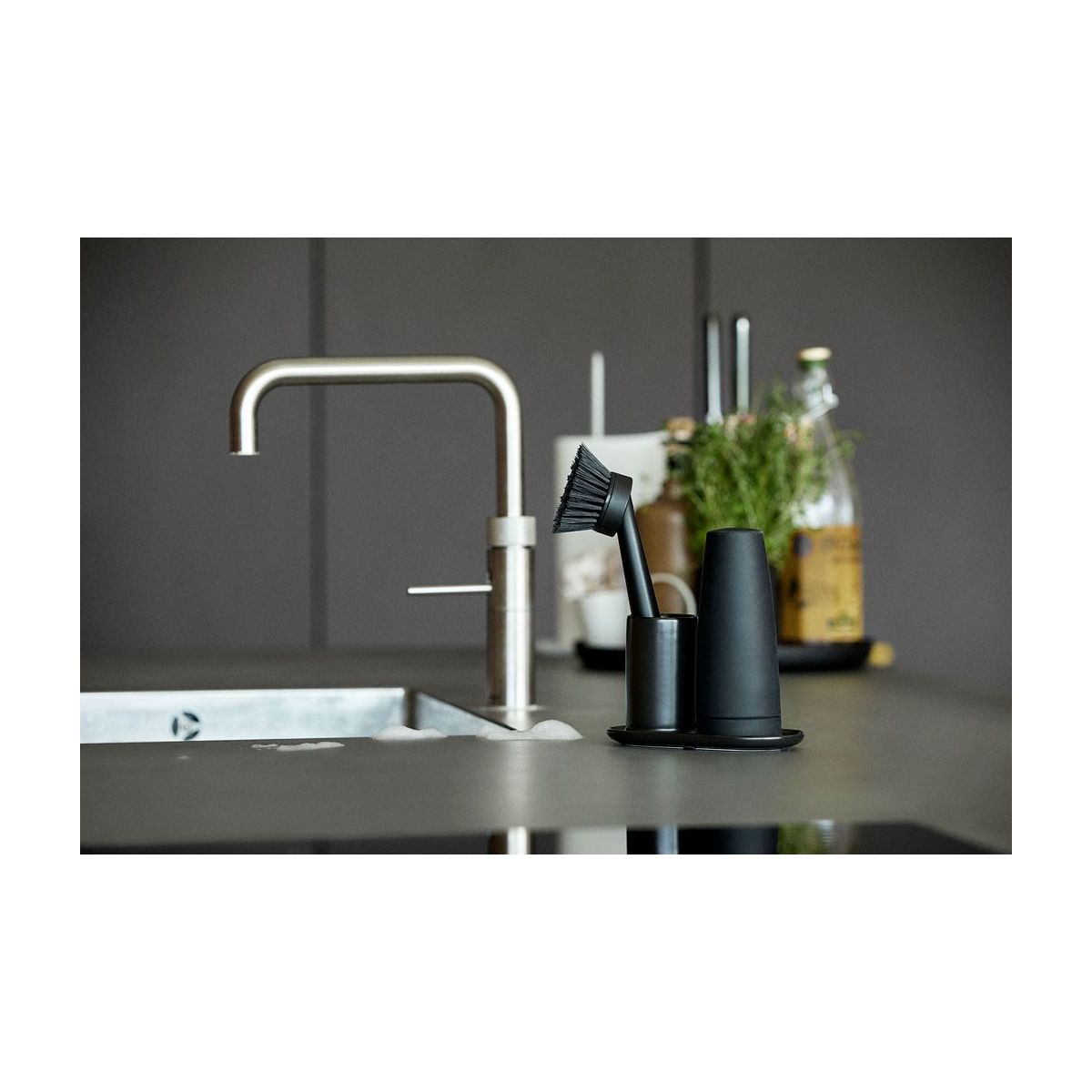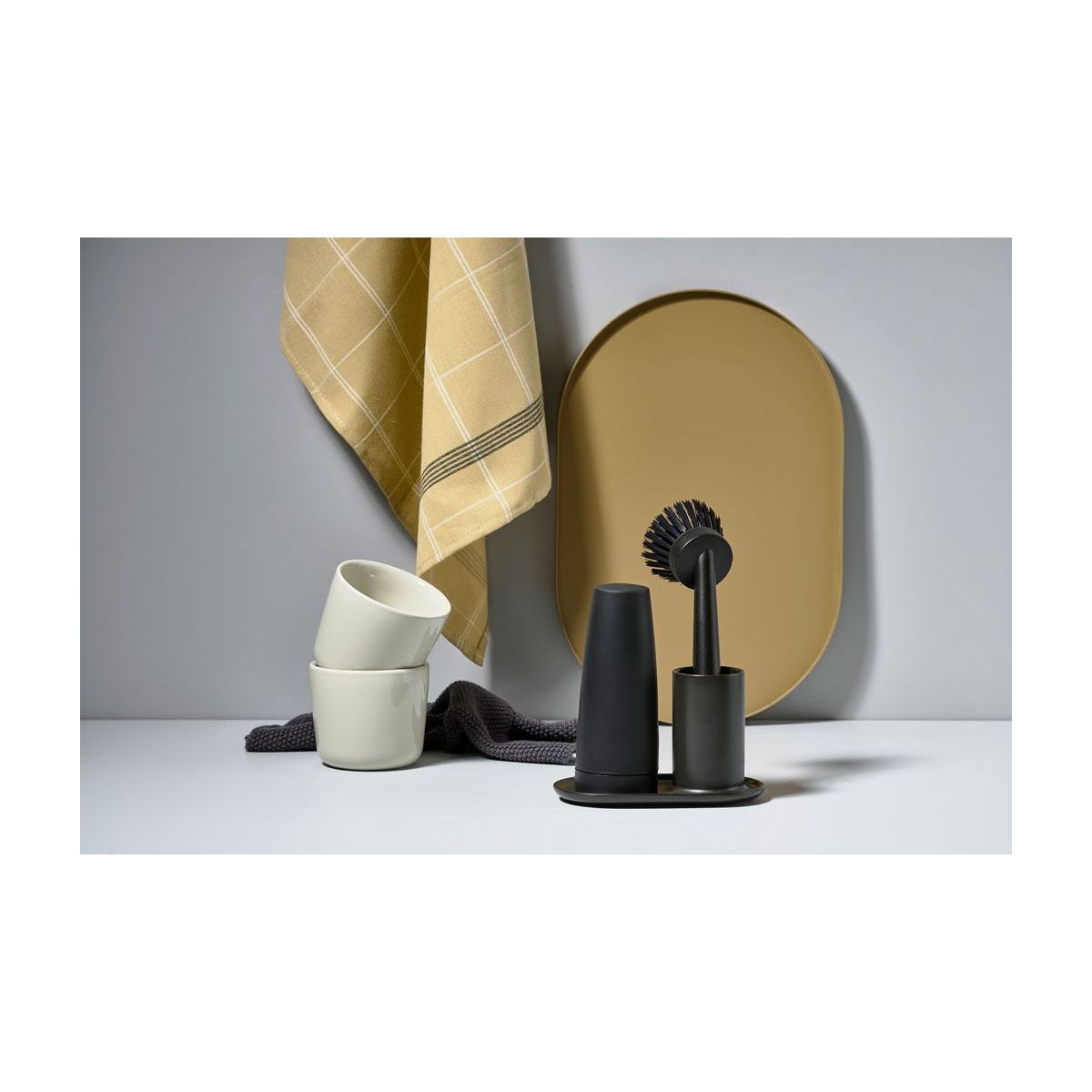- setul include o cană cu perie și un dozator de săpun