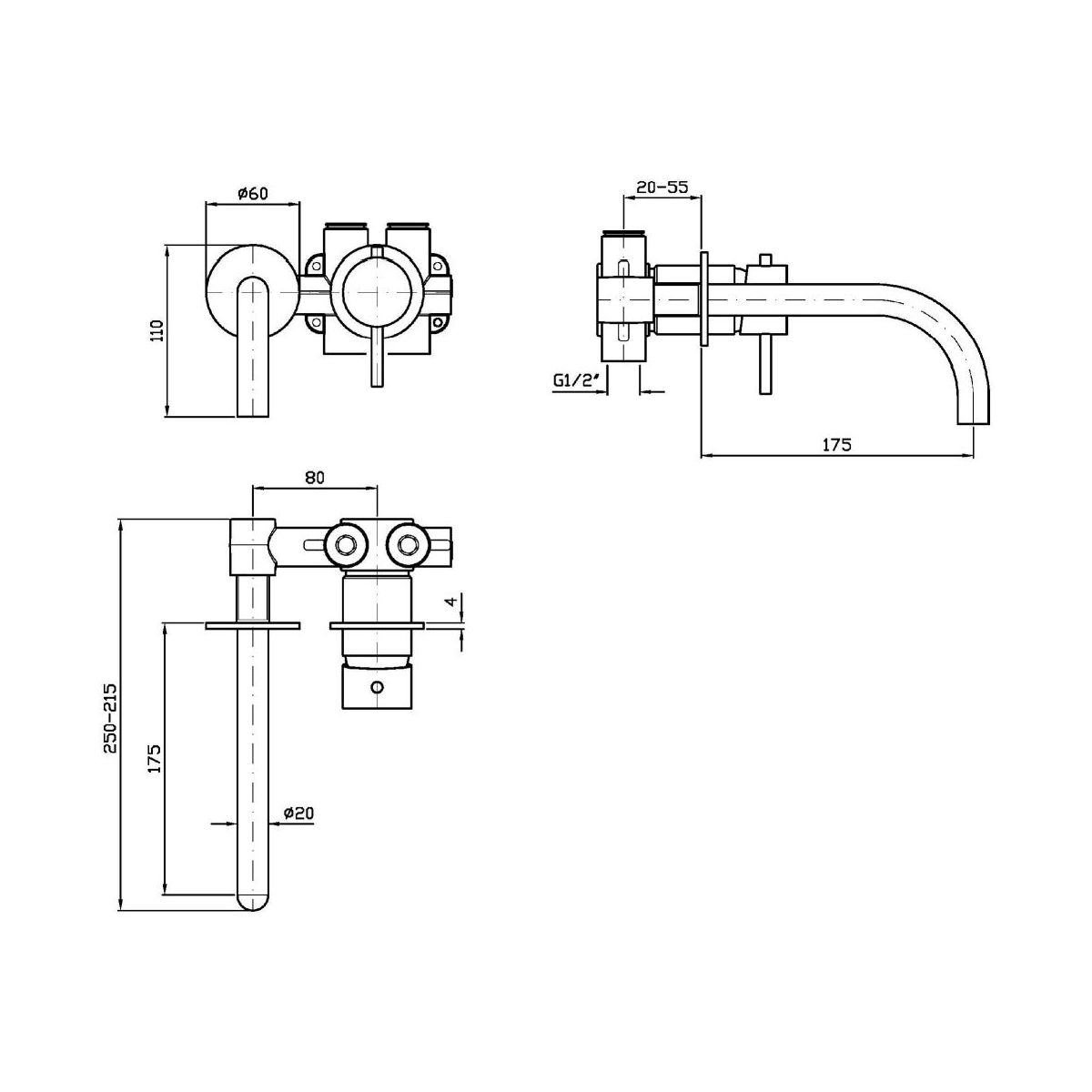 Zucchetti Helm baterie lavoar ascuns auriu ZHE720.XP41